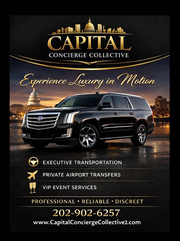Experience luxury, reliability, and professionalism with Capital Concierge Collective’s Executive Transportation Services. Designed for clients who expect comfort, discretion, and on-time performance, our premium black vehicle service delivers a seamless travel experience throughout Washington, DC, Maryland, and Virginia.
